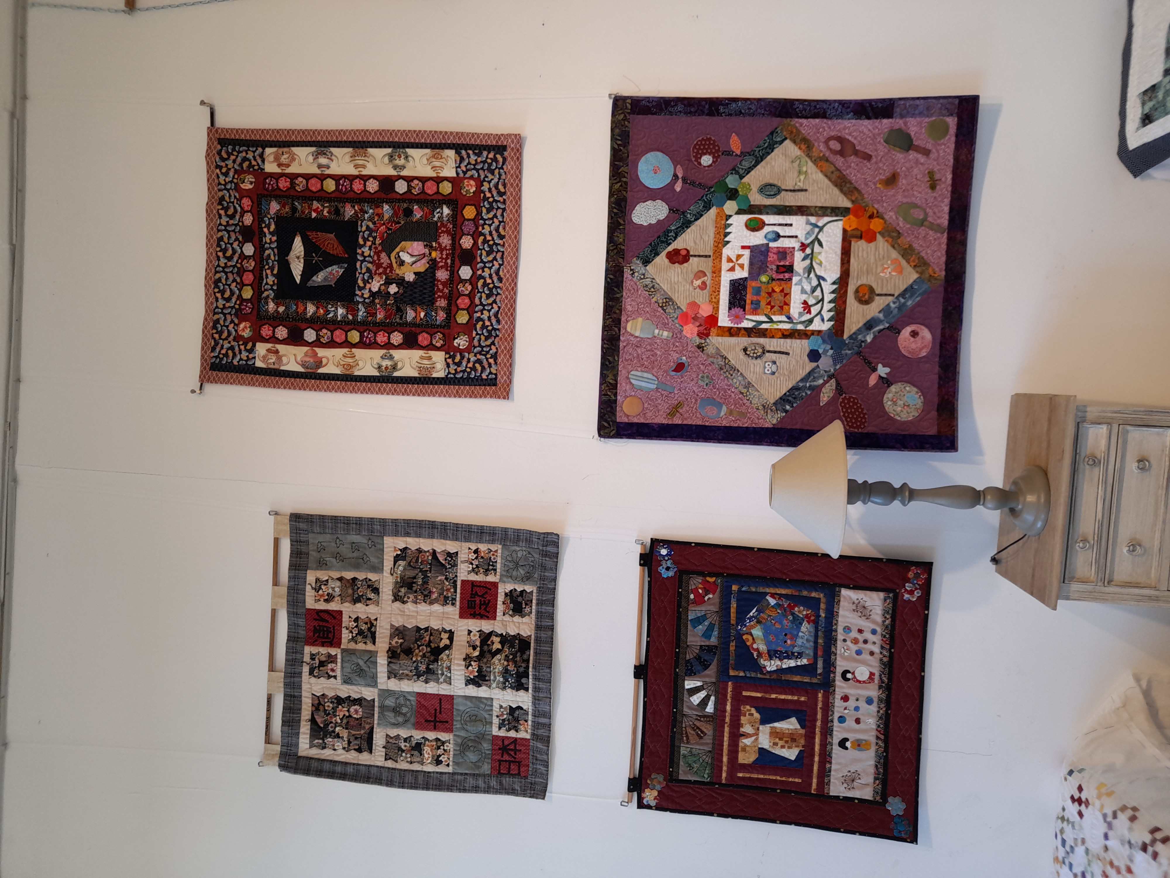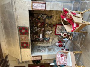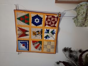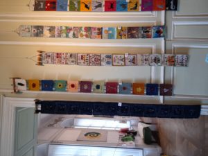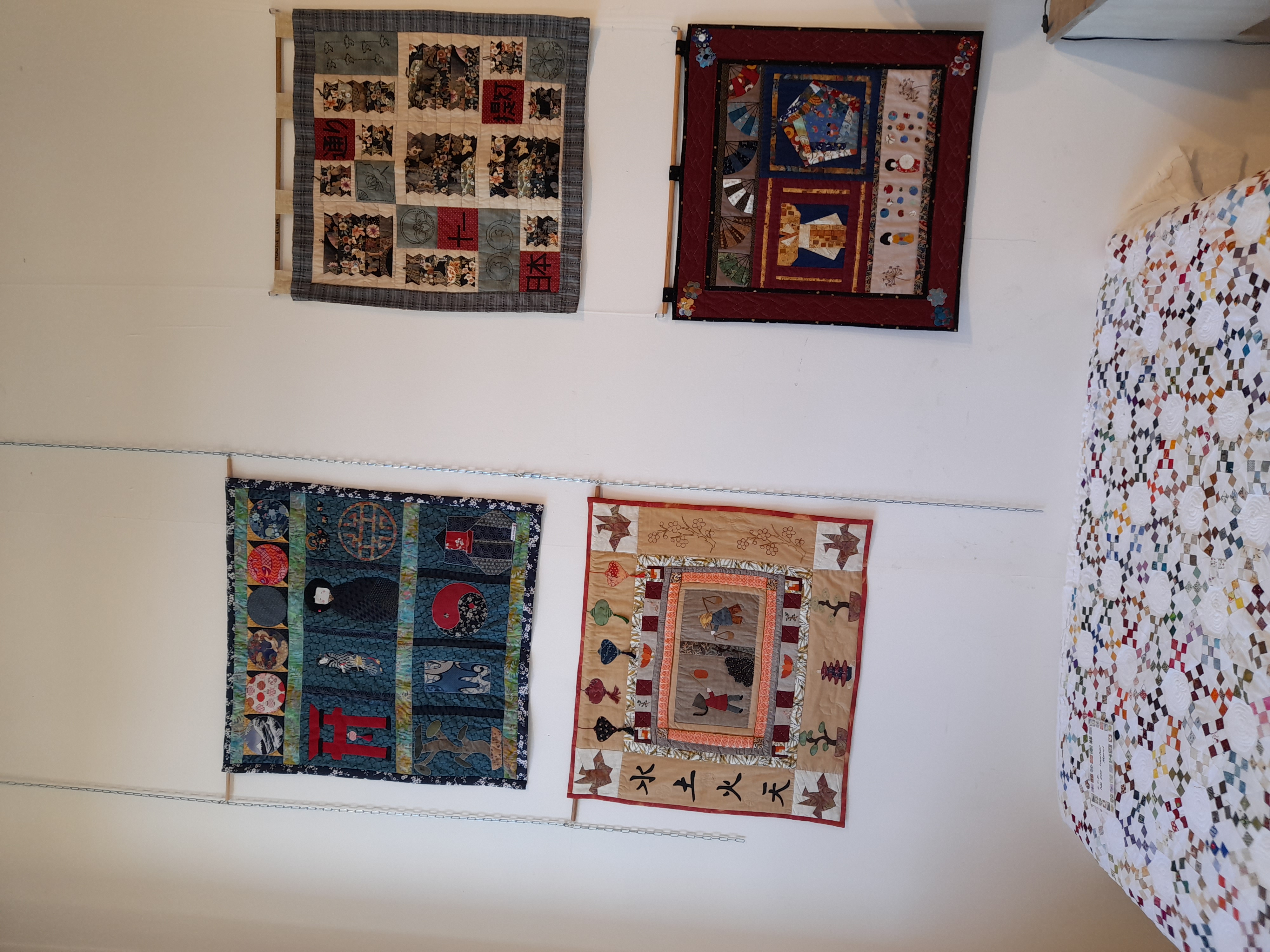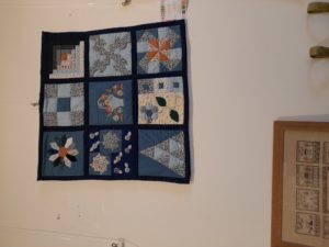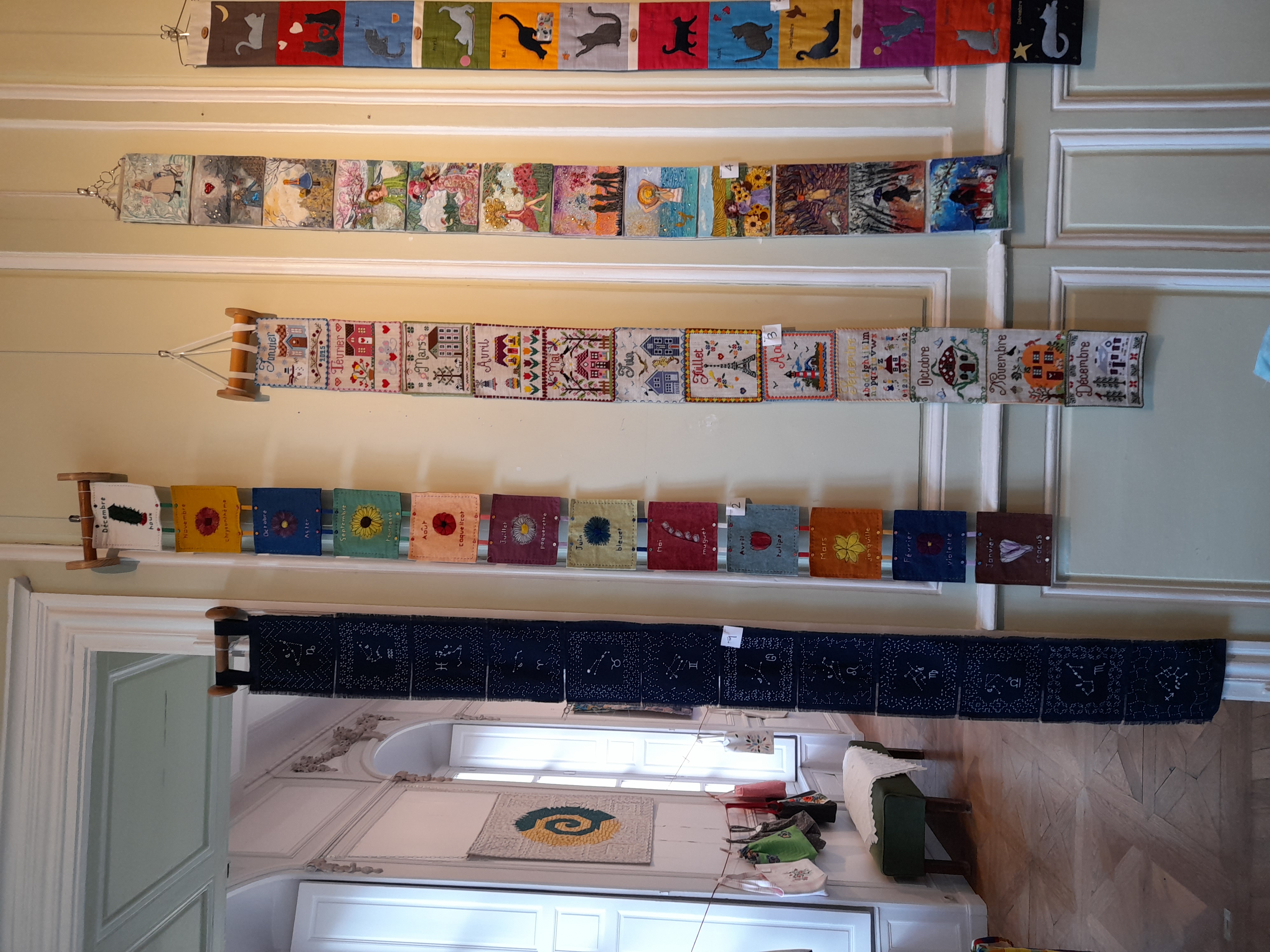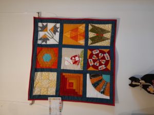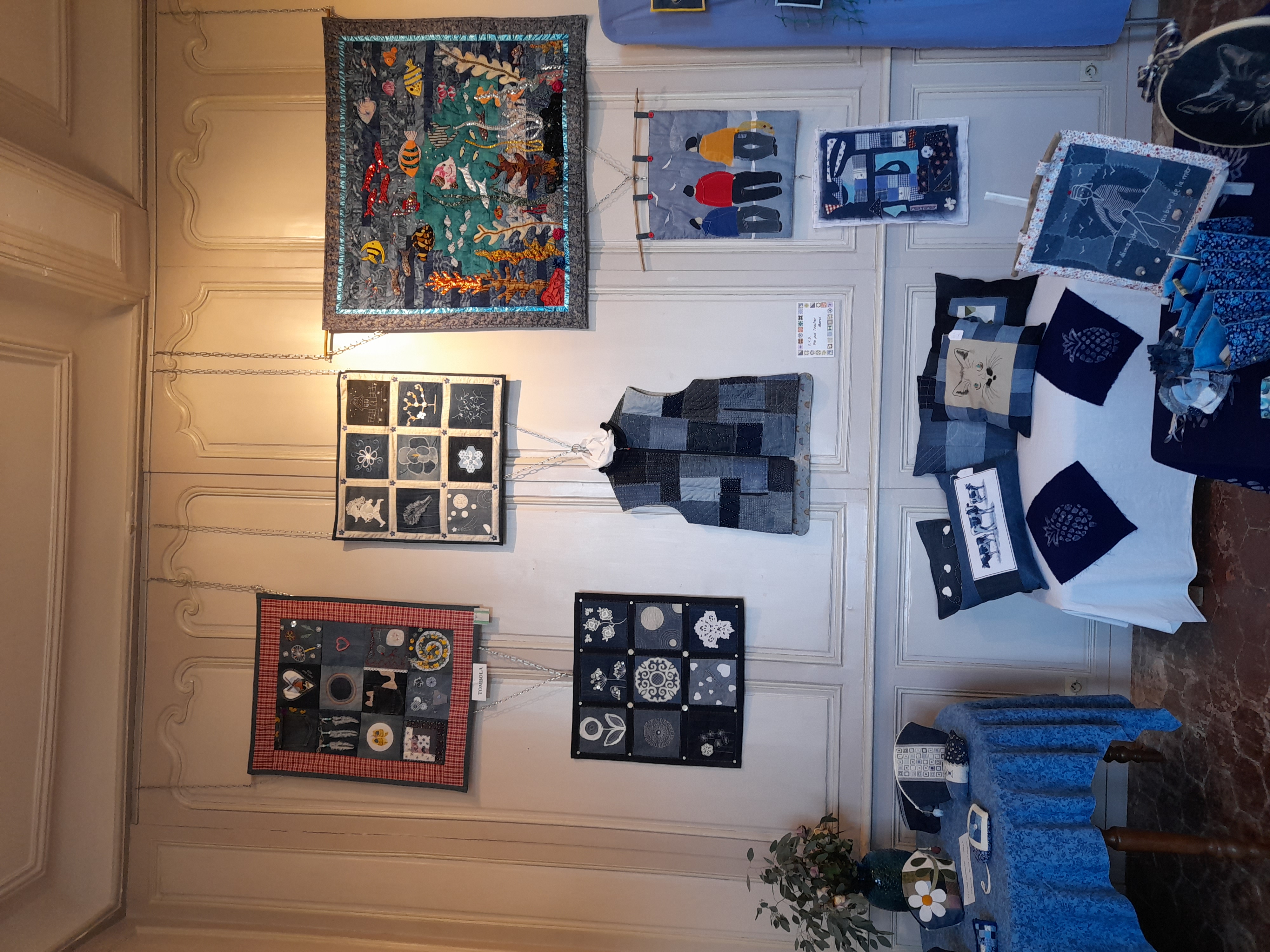 Quelques quilts mystères installés dans la salle Noël où il y a eu beaucoup d’animation :