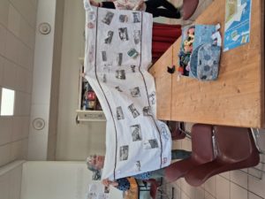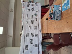 à la médiathèque, ce matin du vendredi 18 Avril , c’était la mise en place sur la toile préparée par Maé .